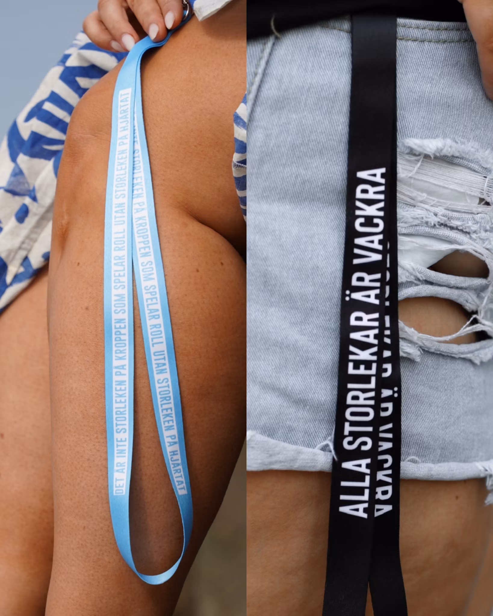 - Svart nyckelband med trycket "Alla storlekar är vackra"